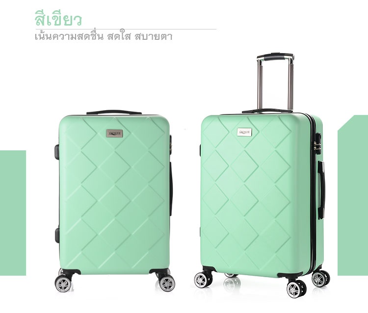 รายละเอียดของสินค้า กระเป๋าเดินทางล้อลาก แบรนด์เกาหลี 24 นิ้ว ลายแบบแท่ง สีเขียว Famouse Korea Luggage Brand+Prismatic Shape+24 Inch+Green Color